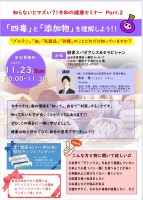 To 自分年2回開催の健康セミナーのお知らせ今回のテーマは「四毒」「添加物」についてです。身近な食材「グルテン」「油」「乳製品」「砂糖」のことどれだけ知っていますか?今すべきは、食の環境を知って自...